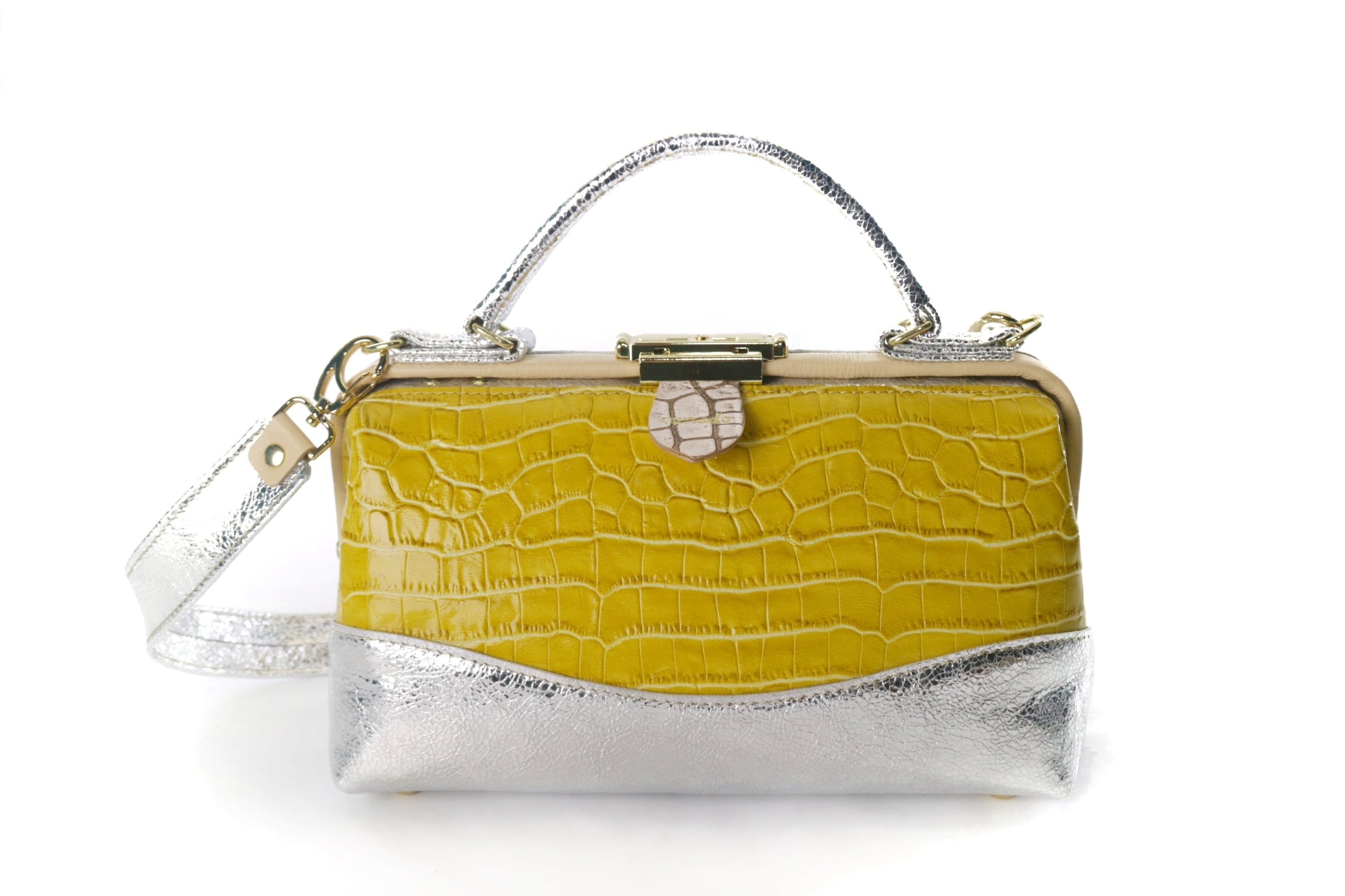 ◆イタリアンレザーのビビッドな型押しイエローを贅沢に使用