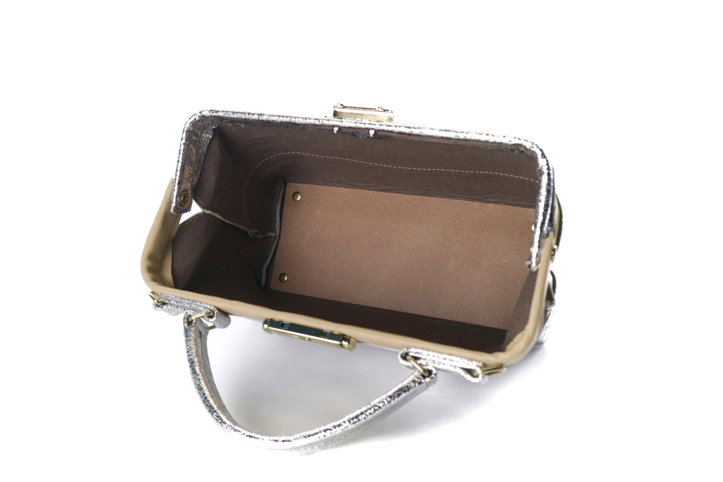 シルバーと組み合わせる事で、コーディネートに華やかさをプラスするドクターバッグ