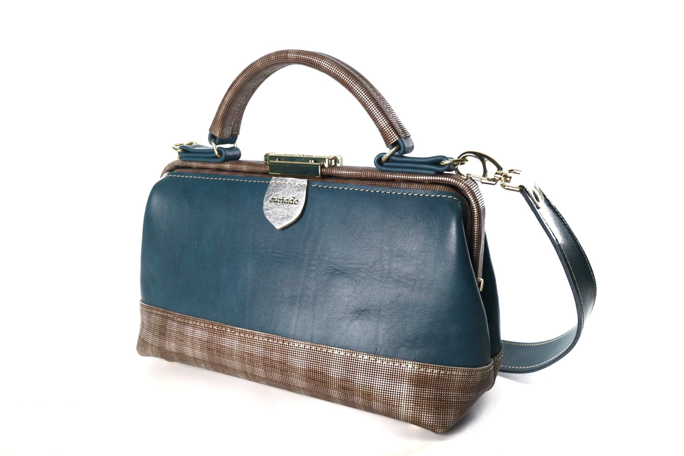 手染めのイタリアンレザーを合わせ上品で高級感漂うドクターバッグに。