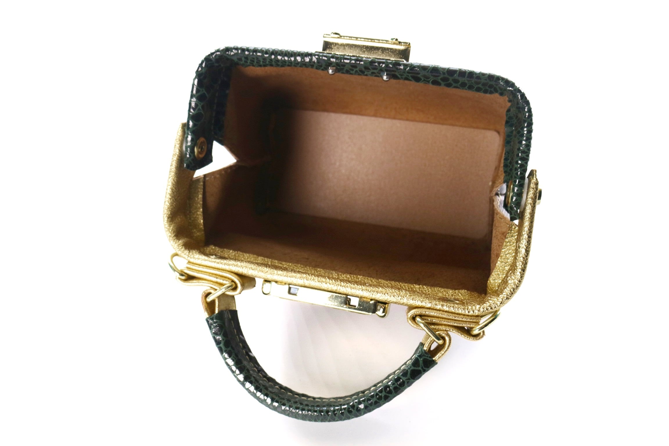 ゴールドをポイント使いすることで高級感漂うミニバッグに