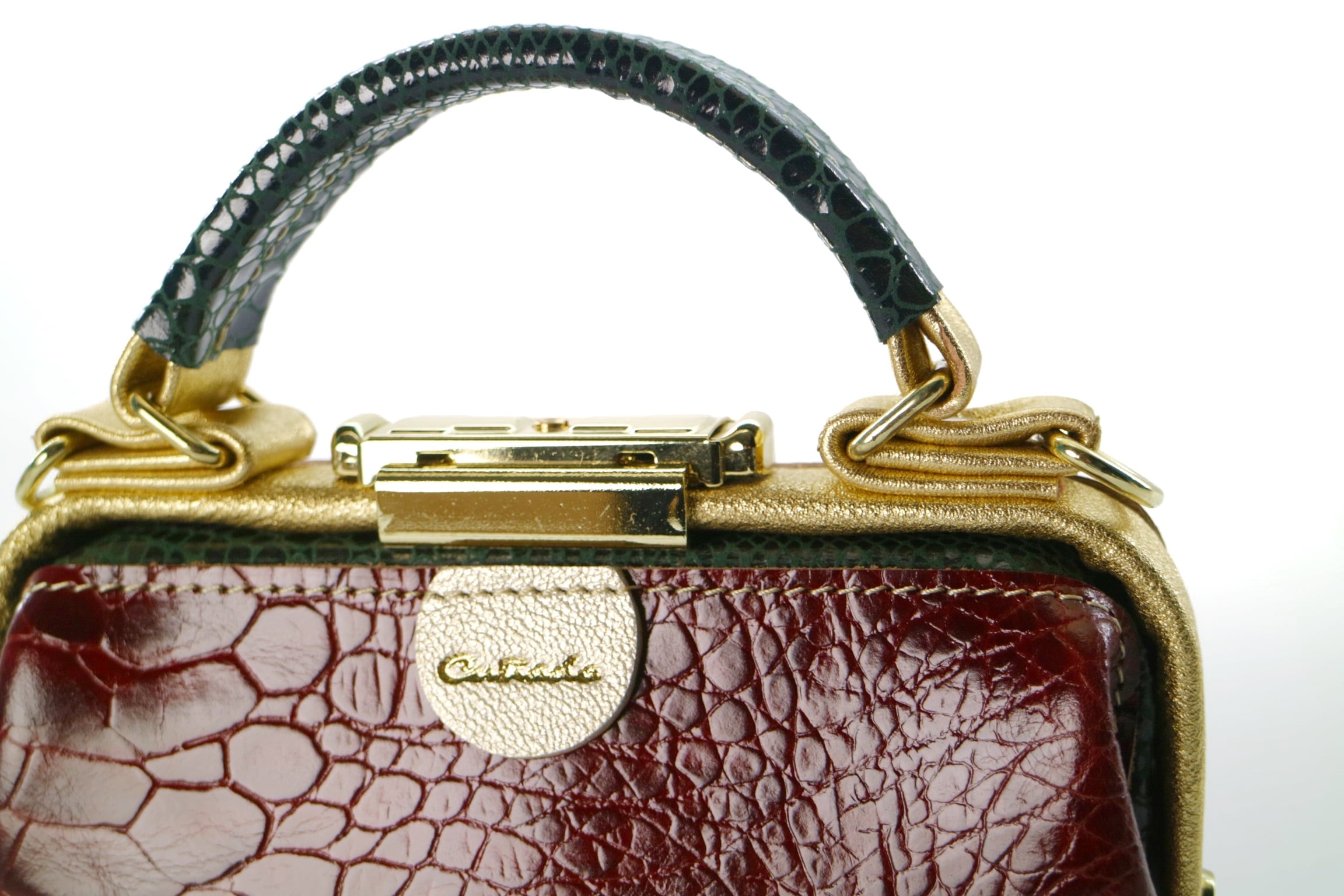 ◆ 深みのあるレッドと落ち着いたグリーンが絶妙に調和した、大人可愛いドクターバッグ