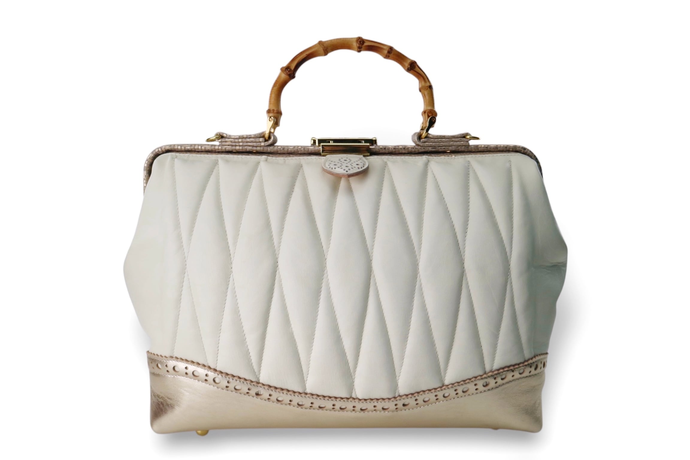 ドクターバッグ・Mサイズ◆キルティング×バンブーハンドル