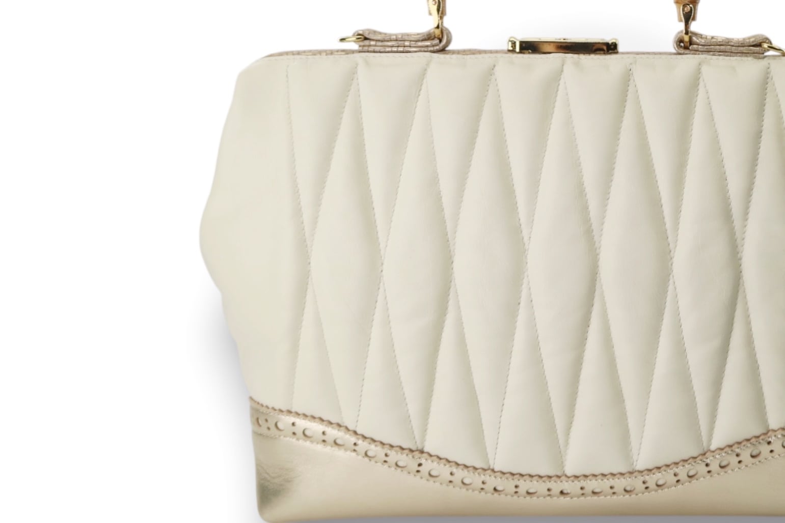 オフホワイトのイタリアンレザーに施された立体的なキルティングは、柔らかな質感と気品ある表情を演出。
